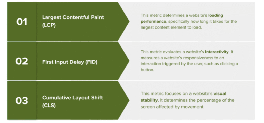 In March 2021, Google introduced Core Web Vitals, a set of new metrics that measure websites’ speed and real-time user experience. These factors have been added to its existing signals to determine a website’s page experience score. The Core Web Vitals are also now part of a core Google algorithm update that provides a new way of evaluating and ranking sites based on the page experience they offer.